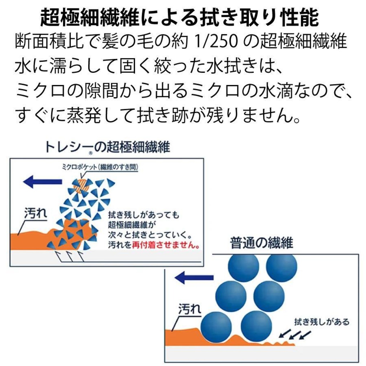 超極細繊維だから、洗剤なしで汚れがしっかりとれる!
