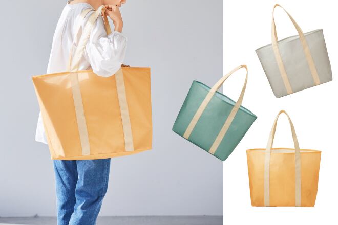 ●丈夫な再生PET繊維100%の不織布製の大型バッグ。