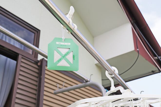 ③物干し竿や軒下・ベランダなど屋外のカメムシの出現場所に吊り下げてください。お持ちの洗濯バサミやフックに引っかけてご使用ください。